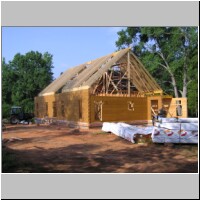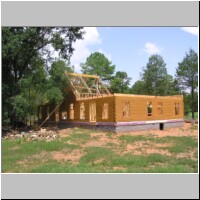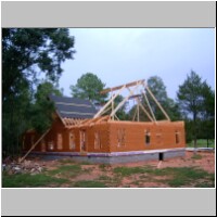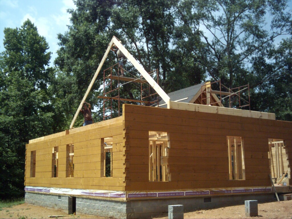 Here are Phillip and Gary setting the first of the main roof rafters. |