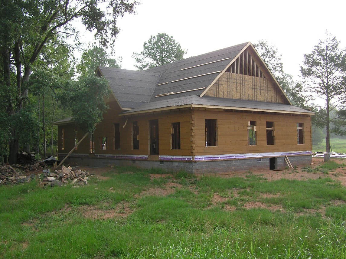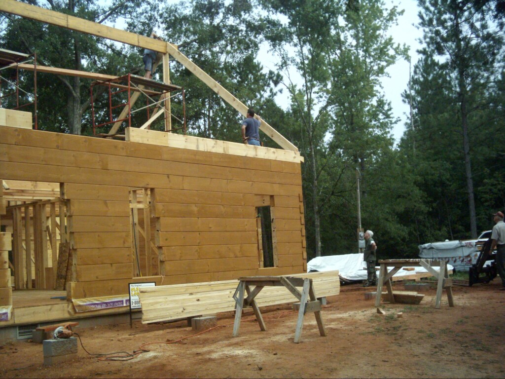 The hardest part with the logs, getting them up and in place 10 to 20 feet above the ground! |